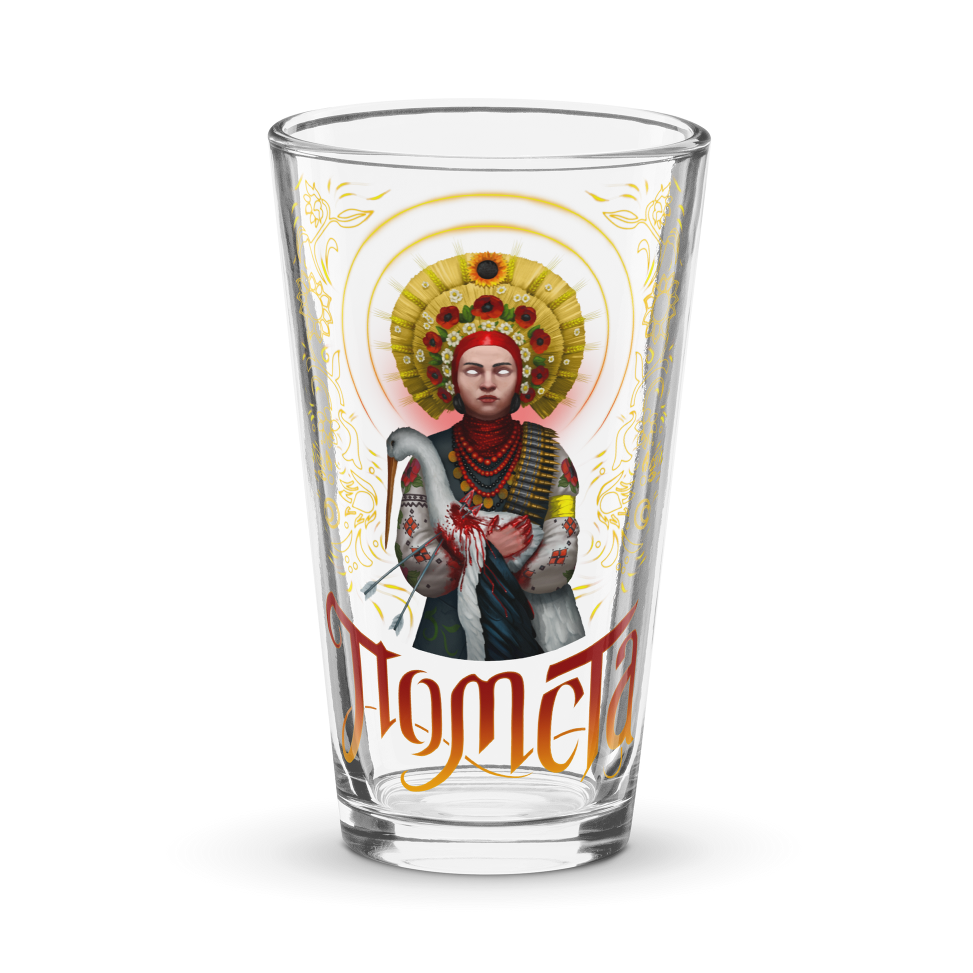 The crane has a special place in Ukraine. It is representative of home and family. This war has struck the Ukrainian people in both. But the Ukrainian people are resilient, and they rise up to defend what's theirs. This pint glass, designed by NAFO's own Grandpa Yurko (https://mobile.twitter.com/yurapalyanytsia) is a perfect representation of the Ukrainian resilience and perserverence.