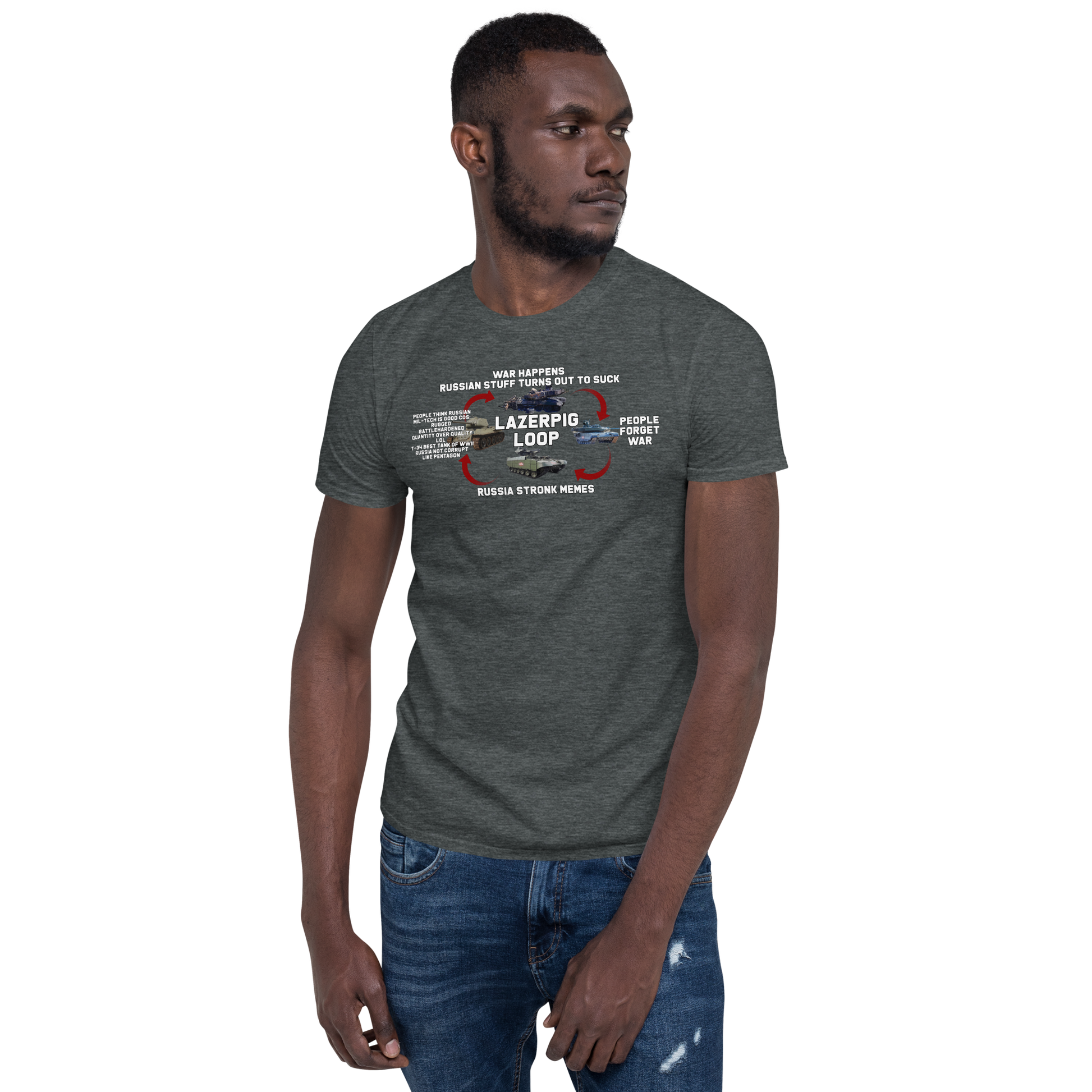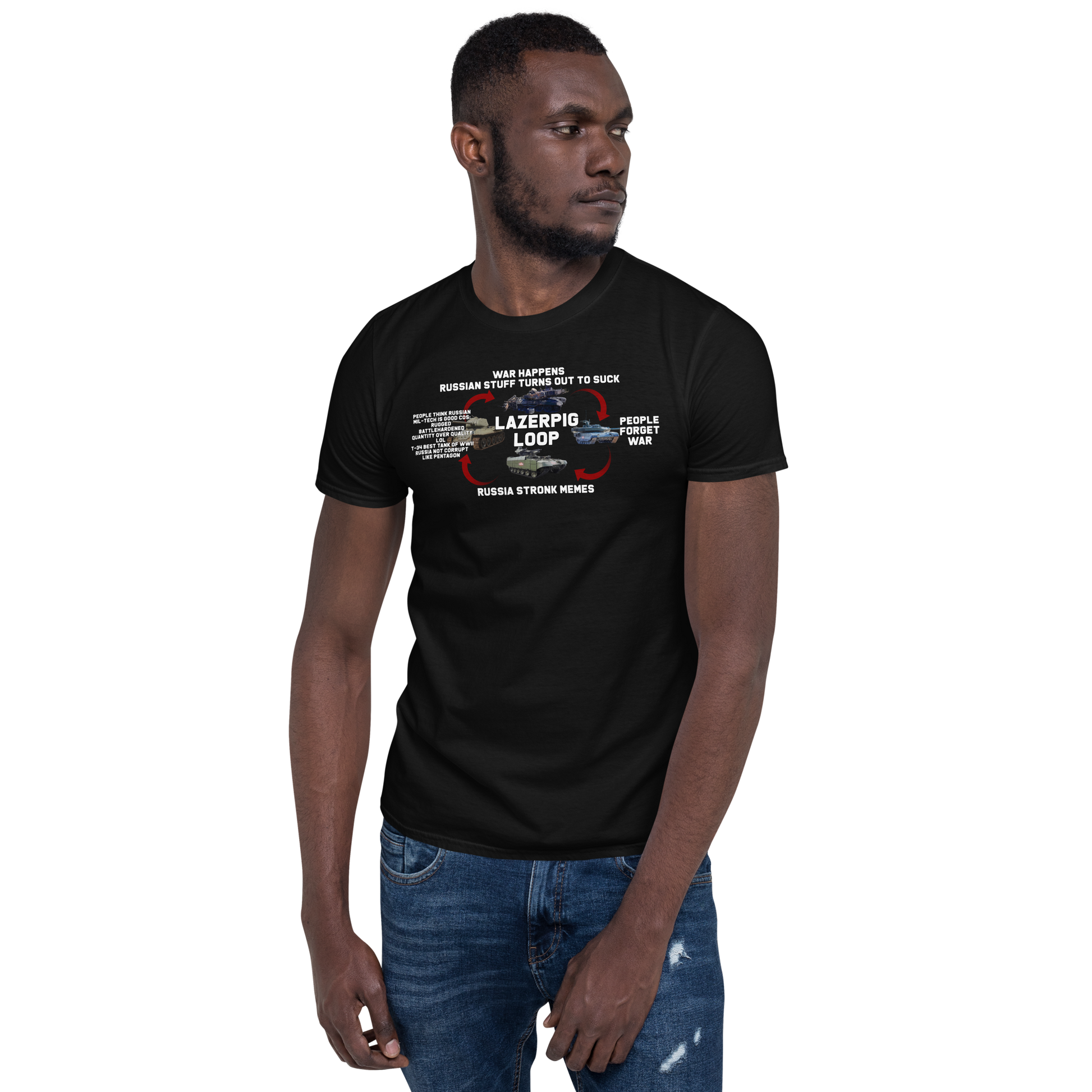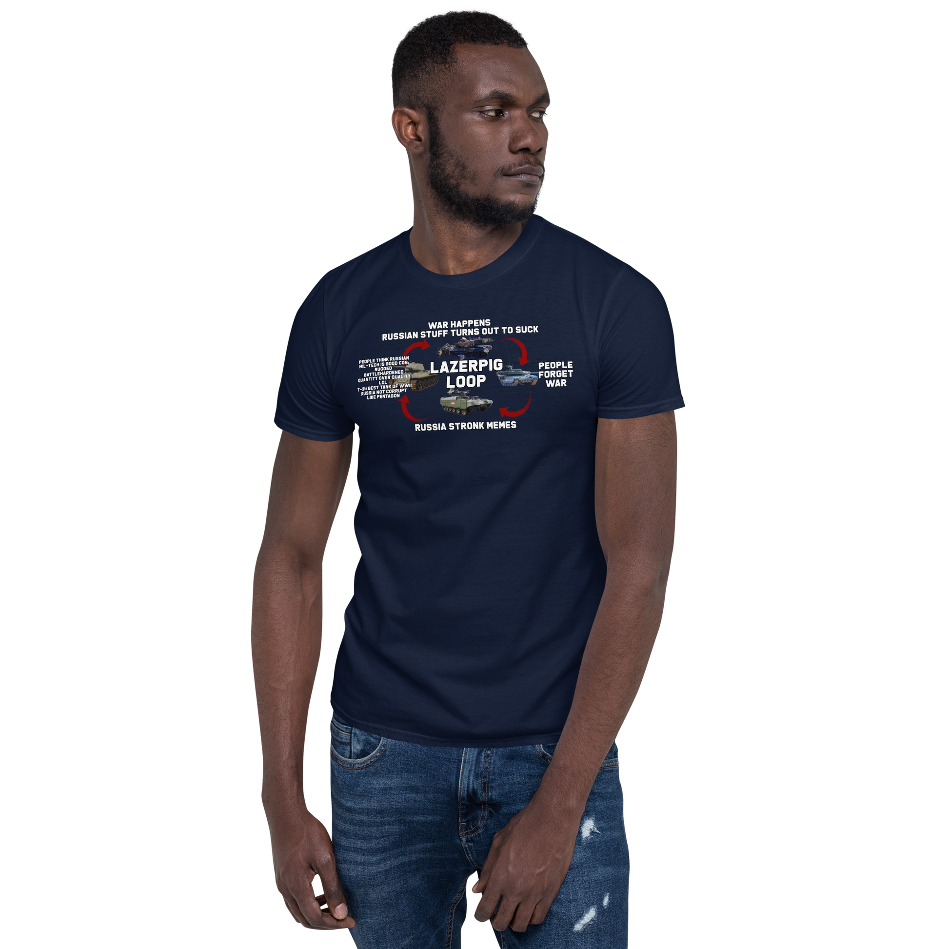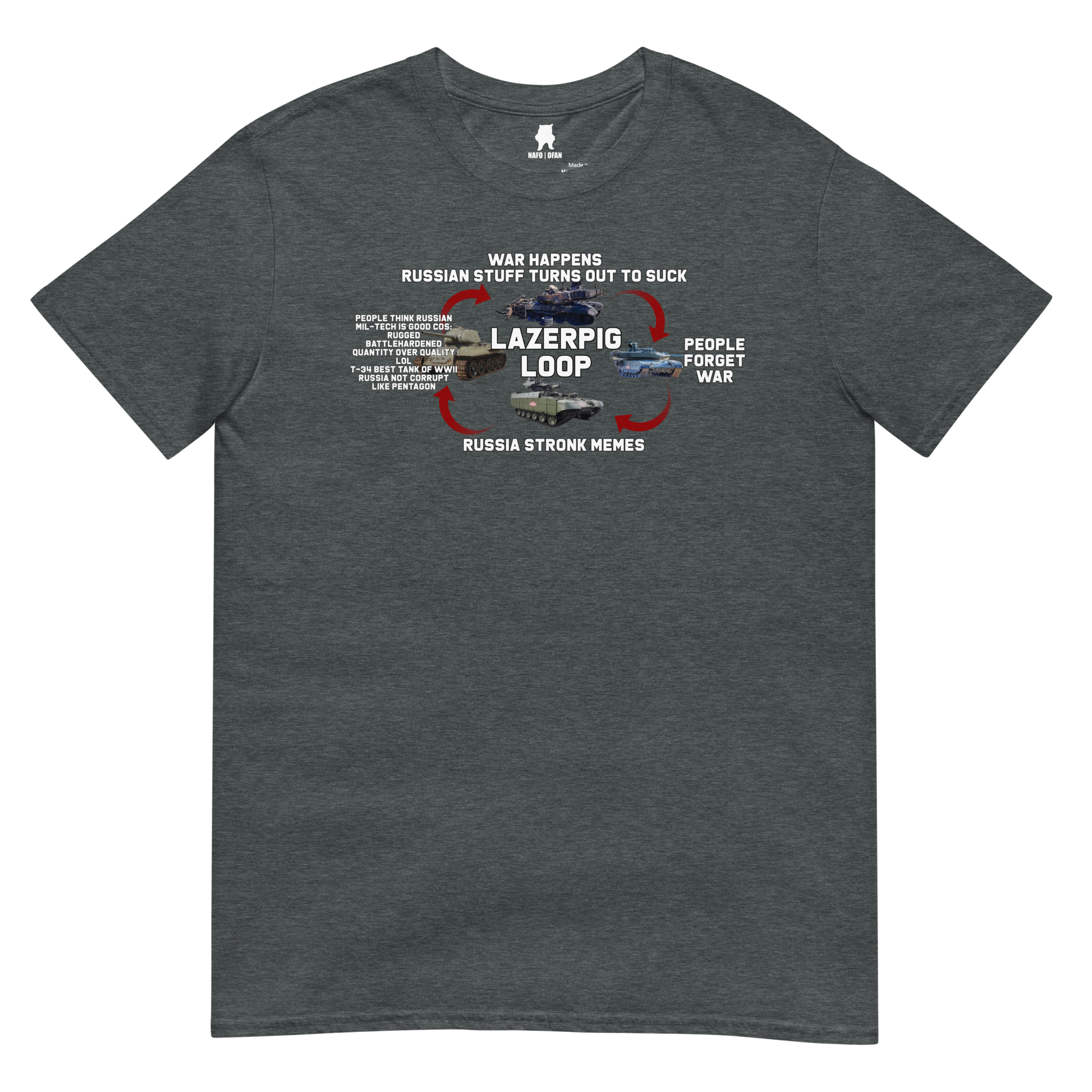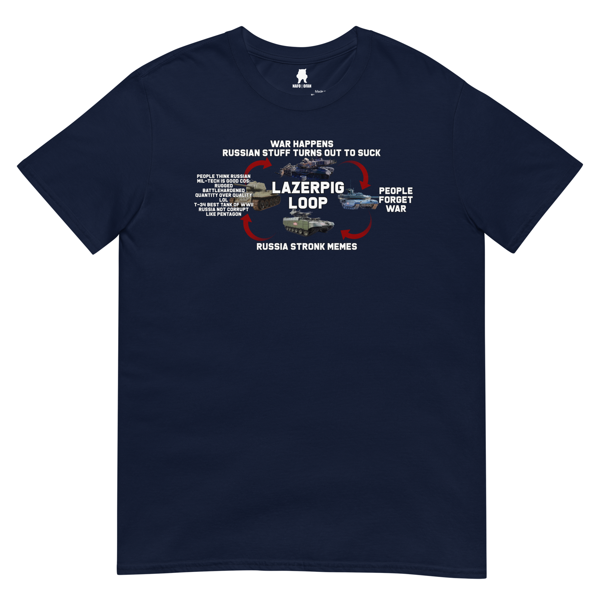 Those who forget history are doomed to be clowned on. The LazerPig Loop has borne out time and again as the "Russia Stronk" crowd somehow always forgets that Russian equipment, well, sucks. This charming t-shirt is the perfect way to show them your disdain as the loop once more holds true.