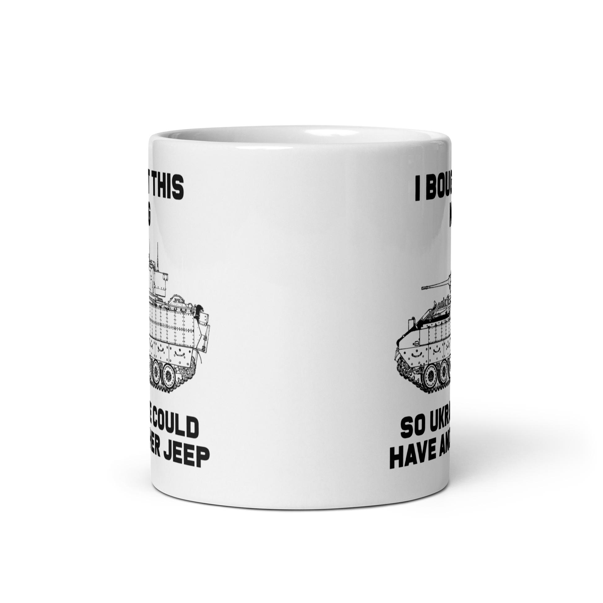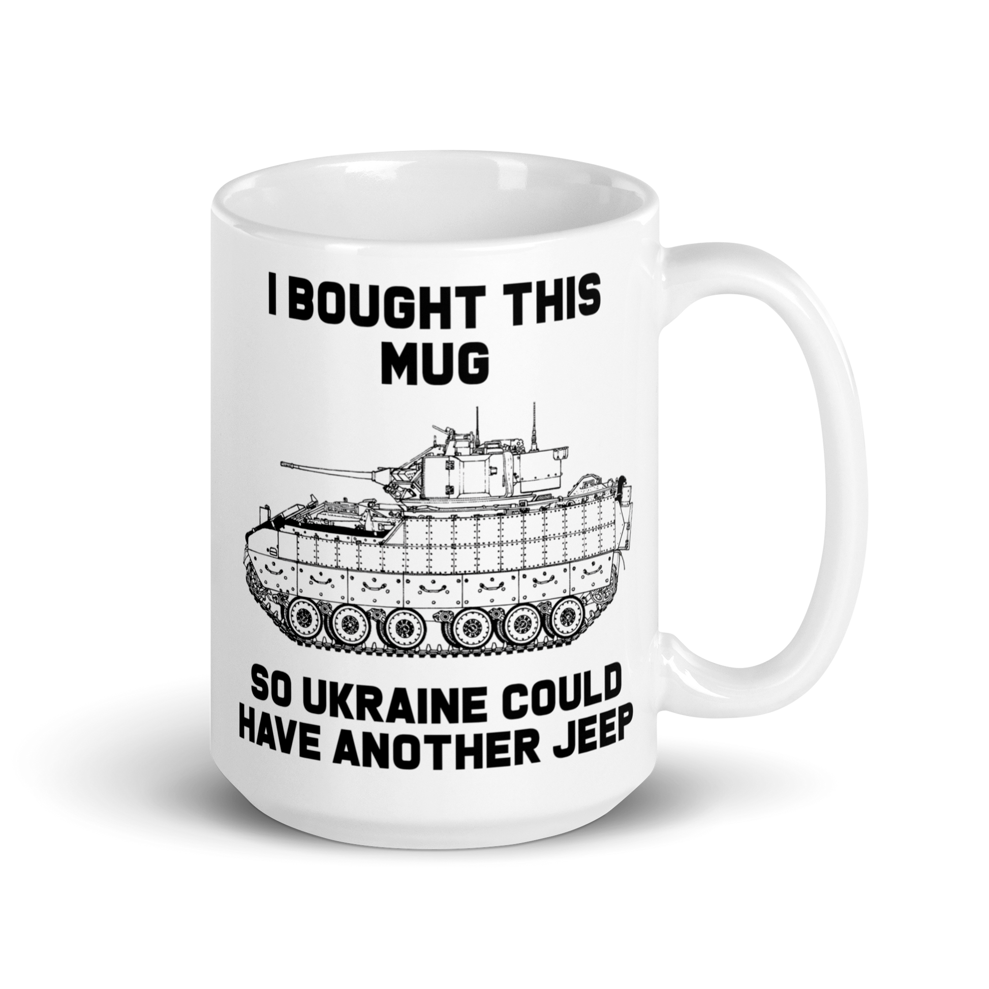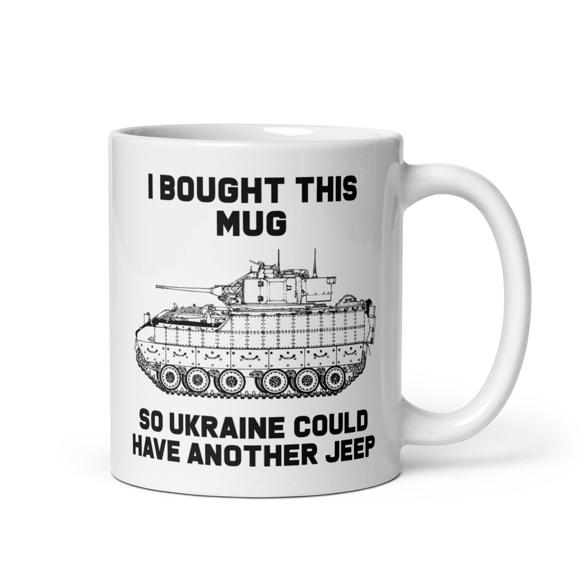C'mon bro, it's basically just a lightly armed jeep bro! Of course you know better than that. This tongue in cheek mug is the perfect way to show your support, and help get Ukrainian defenders another jeep. Or body armor. Or first aid.